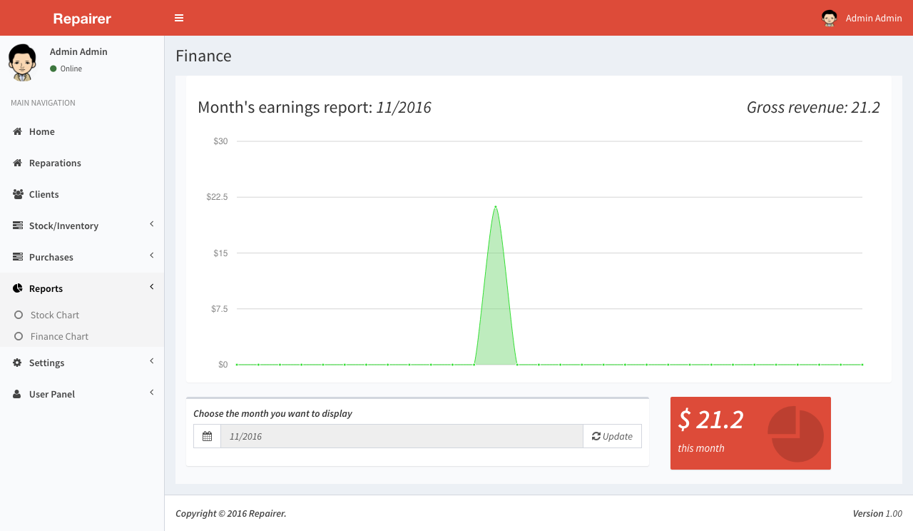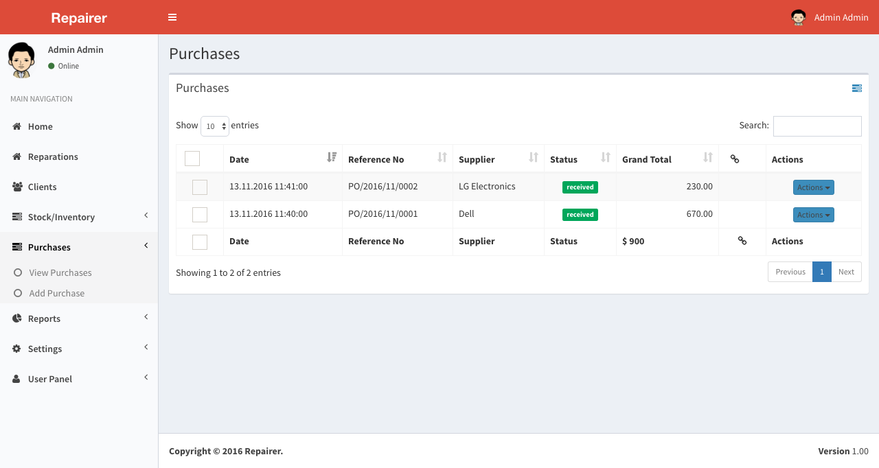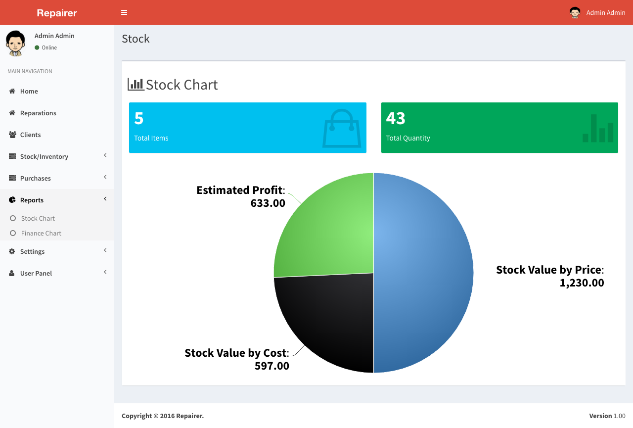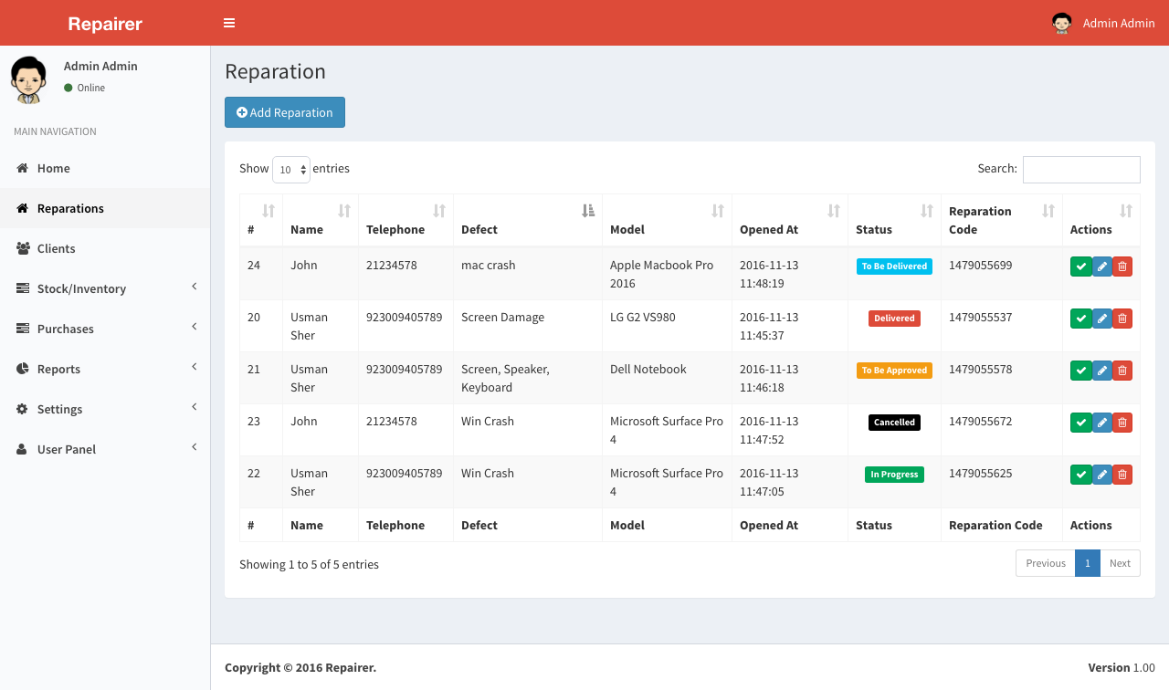 Repairer - Repair/Workshop Management System is carefully developed for easy management of any type of repairshop/workshop. It's actually an innovative, simple and powerful management tool, designed and developed for you. It’s just your trusty employee. It’s a web based system where you can manage reparations, clients, inventory, purchases etc.